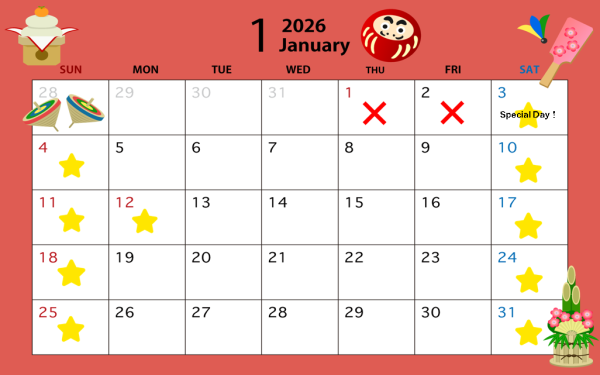 - ウィークエンド&ホリデイ会員様 1月利用可能日のお知らせ