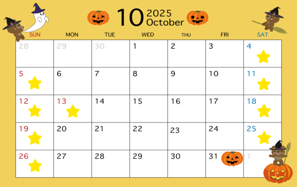 カレンダーの星印のついた日をご確認の上、ご来館ください!